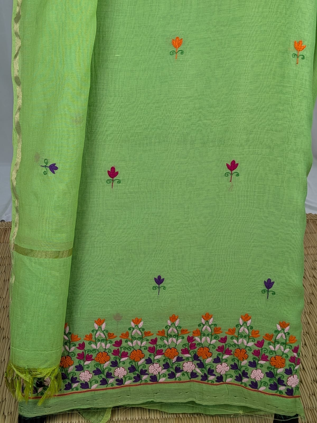 Hand embroidery work- Full suit- Floral Ari work on Chanderi mul.